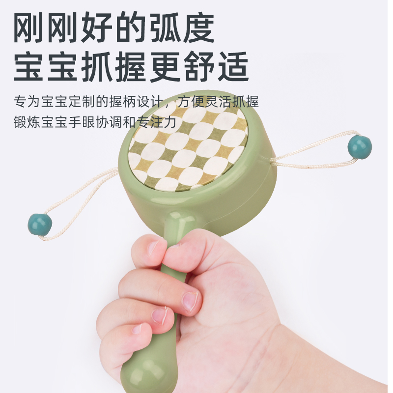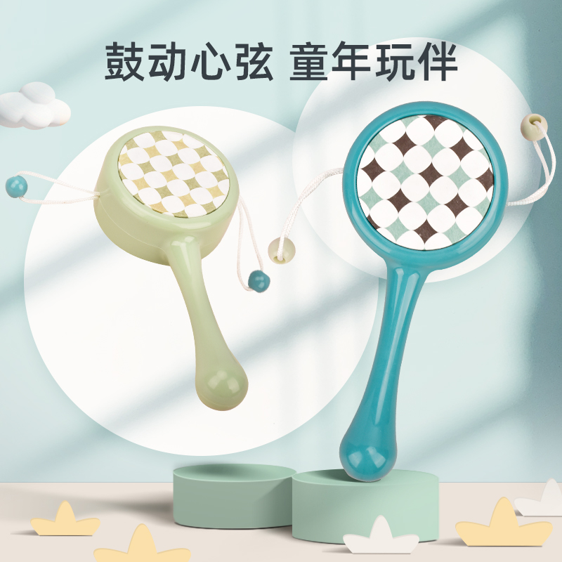 Baby dial drums can bite 3 - 6 months newborn baby hand rock drum 0 - 1 year old Yizhi ringing bell toy