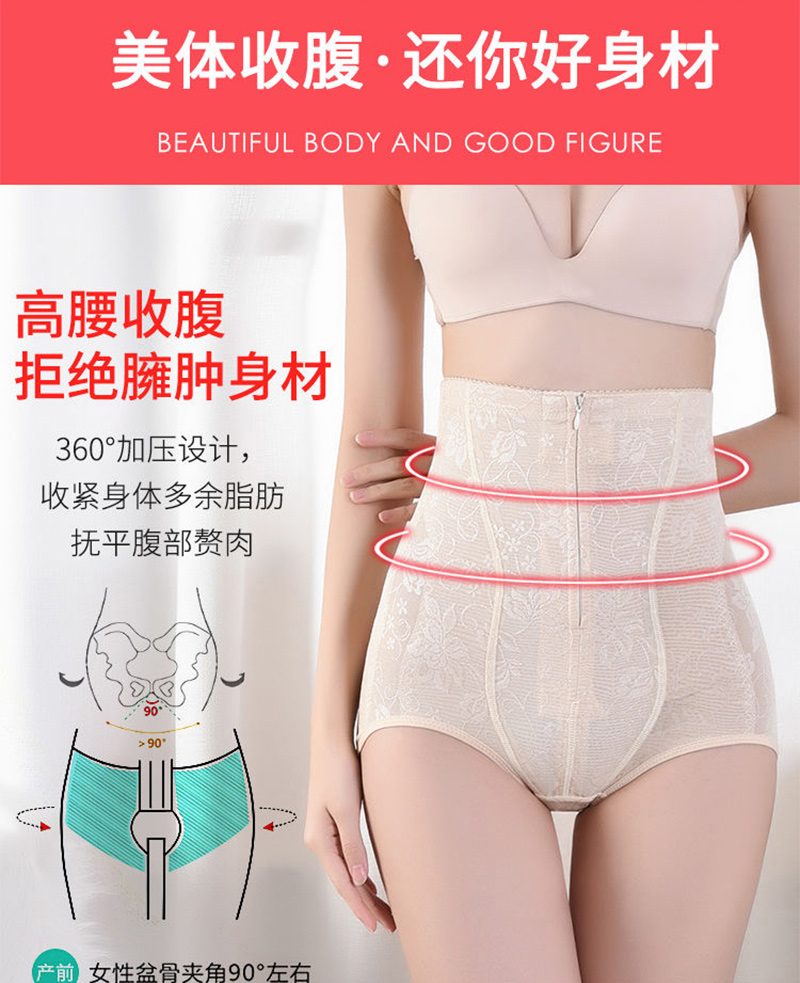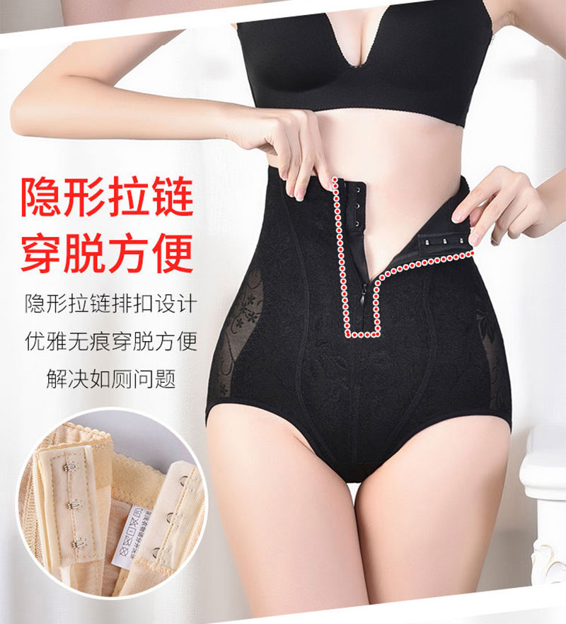 Postpartum high-waist zipper, abdomen, buttocks, panties, female body sculpting, no curling, waistless, seamless shaping, small belly, strong