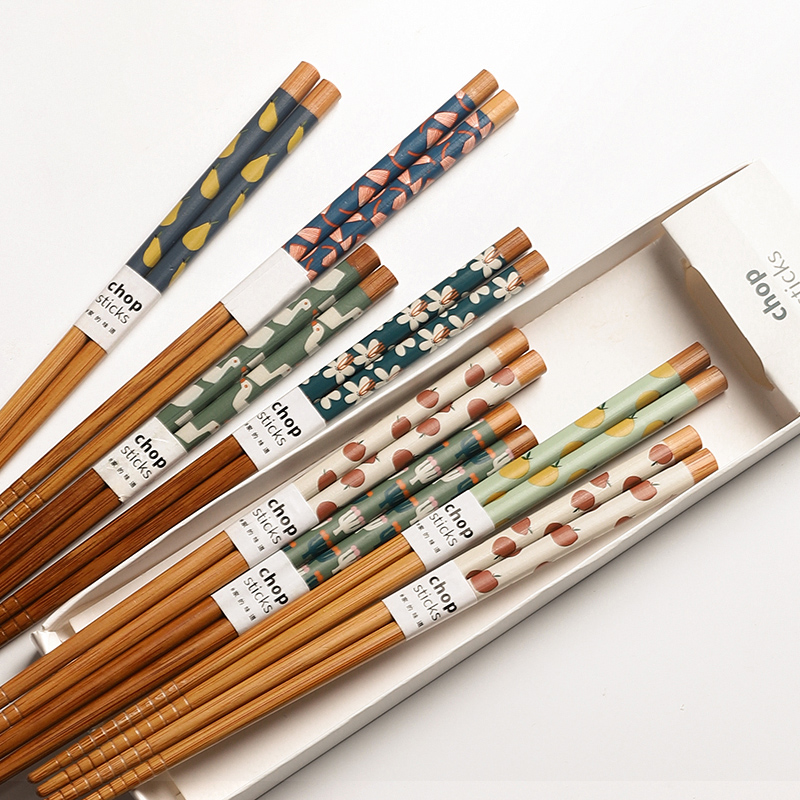 Day style and wind bamboo chopsticks-blue and green printed 8 double gift box dress Japanese style and wind bamboo chopsticks-geometric pattern 8 double gift box dress Japanese style and wind bamboo chopsticks-blue orange printed 8 double gift box dress Japanese style and wind bamboo chopsticks-fruit