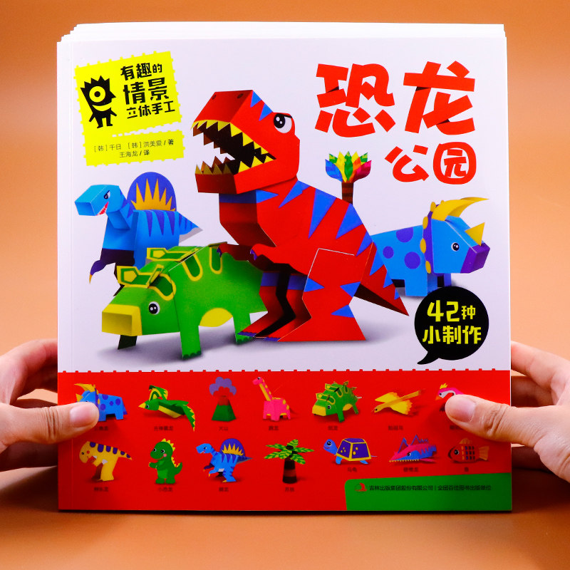 Children handmade book 3d Cubism paper book big all 3-6 to 8 year old kindergarten cut paper dinosaur diy making material