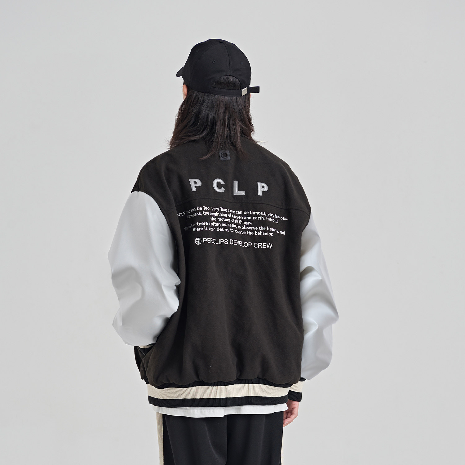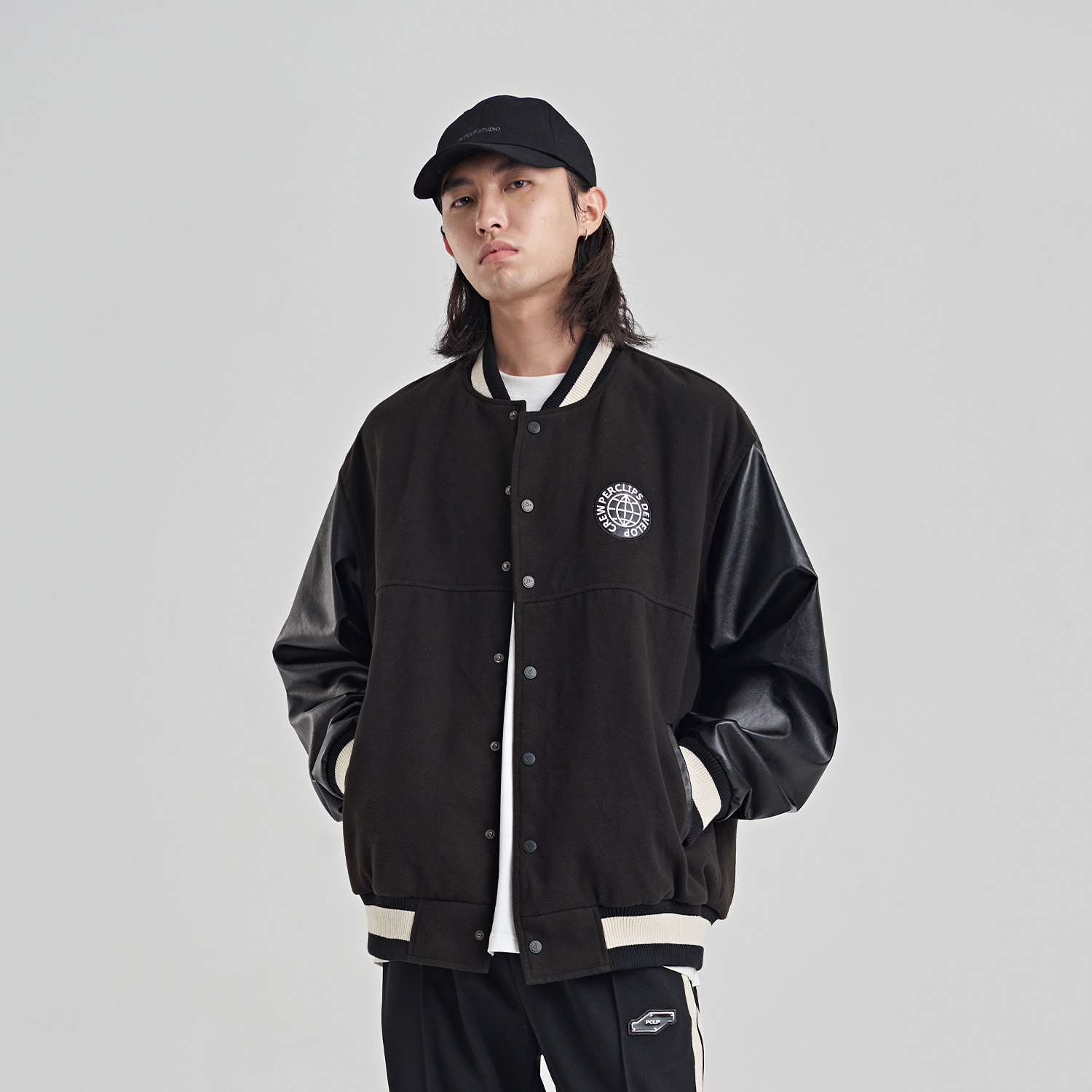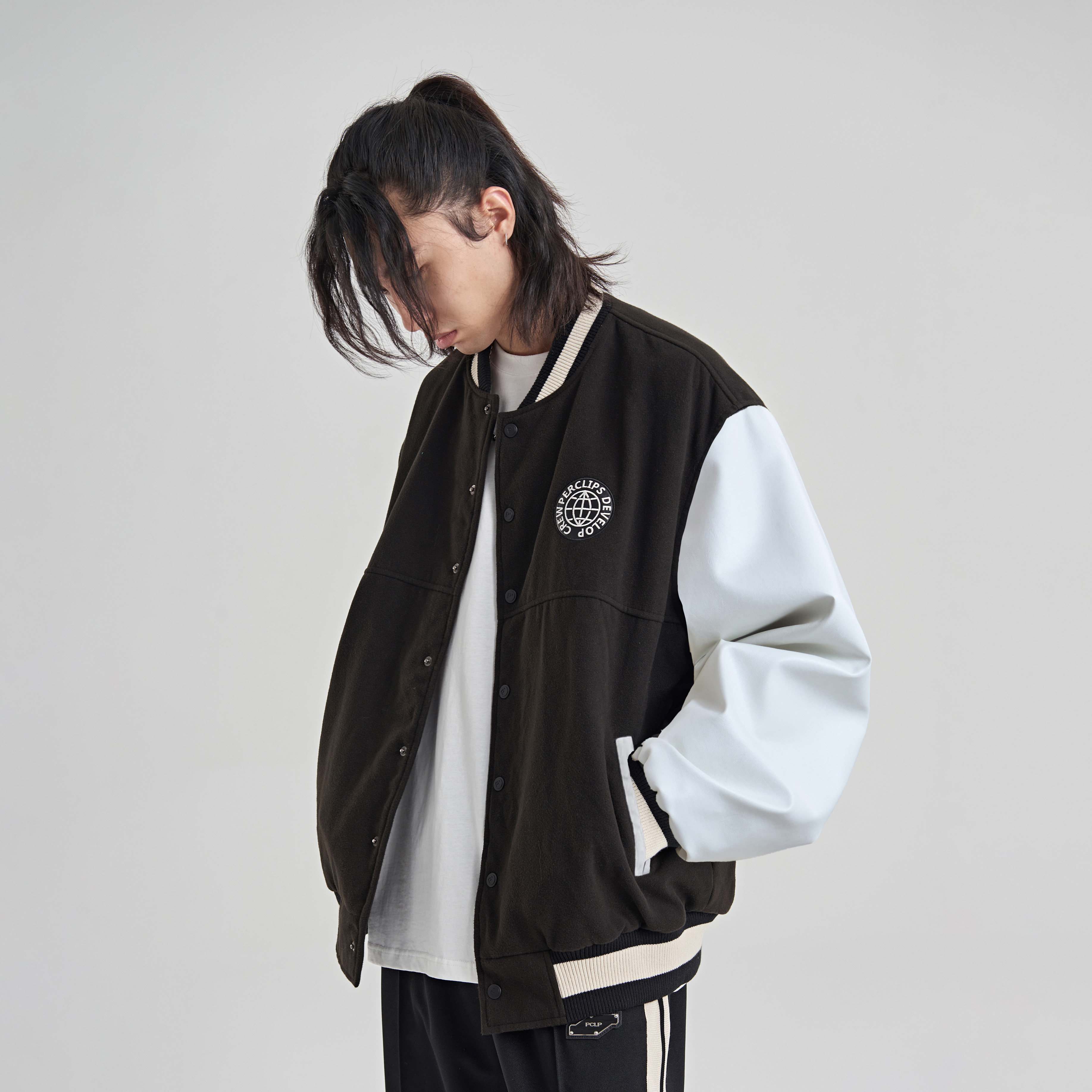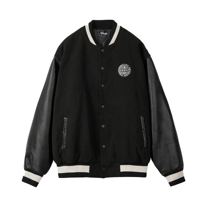 PCLP Universal Alphabet Collared Sleeves Black Baseball Suit National Tide Card Spring Autumn Season Jacket Jacket Man