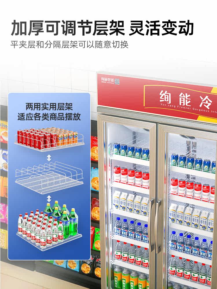 Xuanneng beverage cabinet supermarket freezer commercial refrigerated fresh-keeping air freezer vertical convenience store three-door display cabinet refrigerator