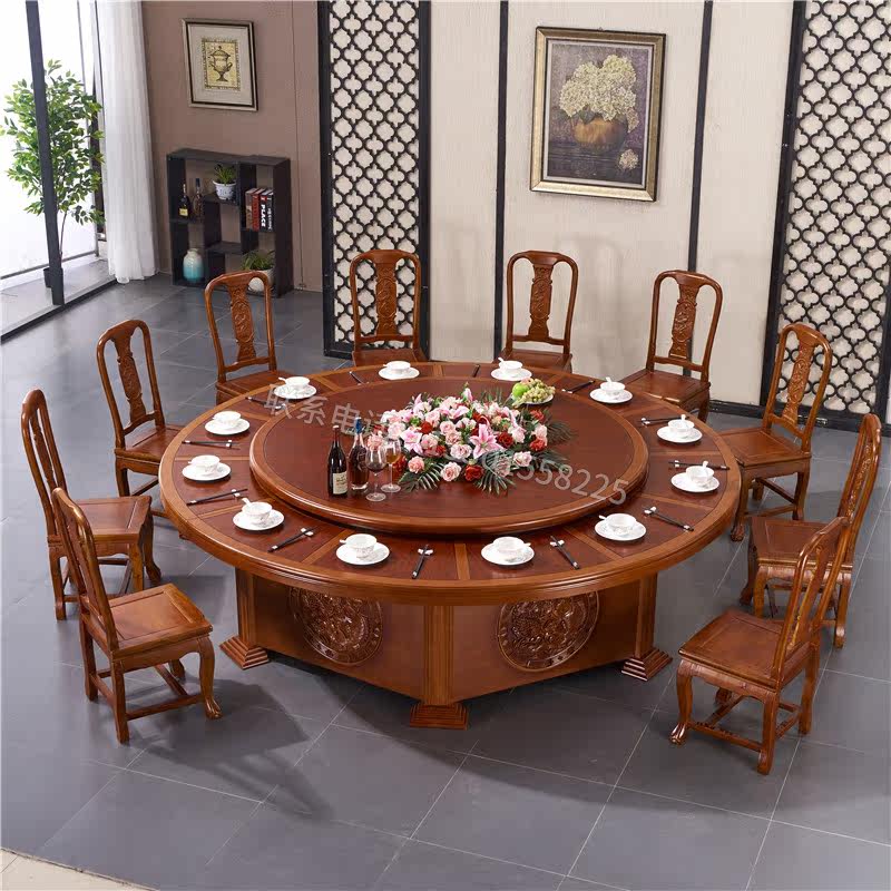 Customized hotel club restaurant modern Chinese solid wood marble 15 people turntable electric table large round table