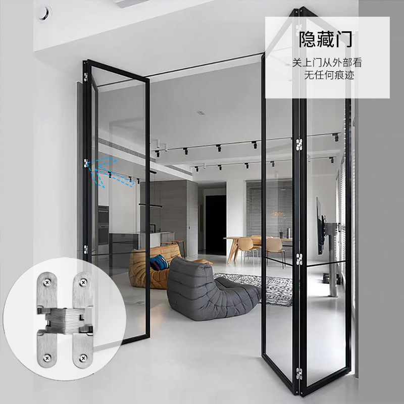 Invisible door hinge concealed folding folding wood door stainless steel cross hinge small cabinet door 5 gold accessories Outer dark door wardrobe