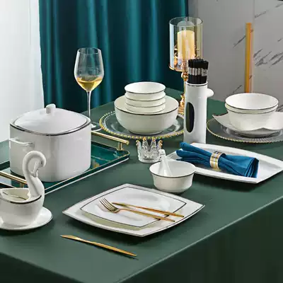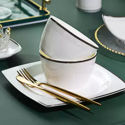 Guoyue Tangshan bone china tableware set Rice Bowl plate chopsticks dish set home light luxury modern housewarming combination
