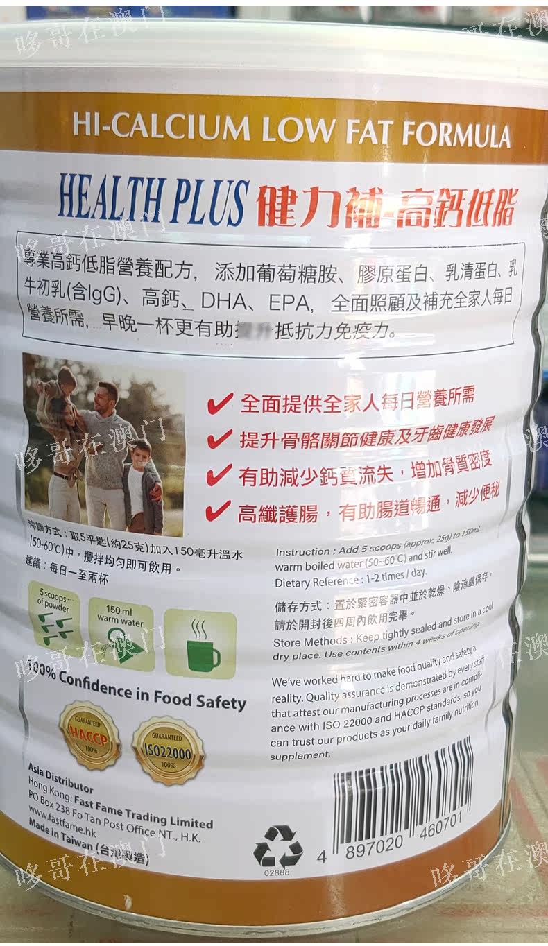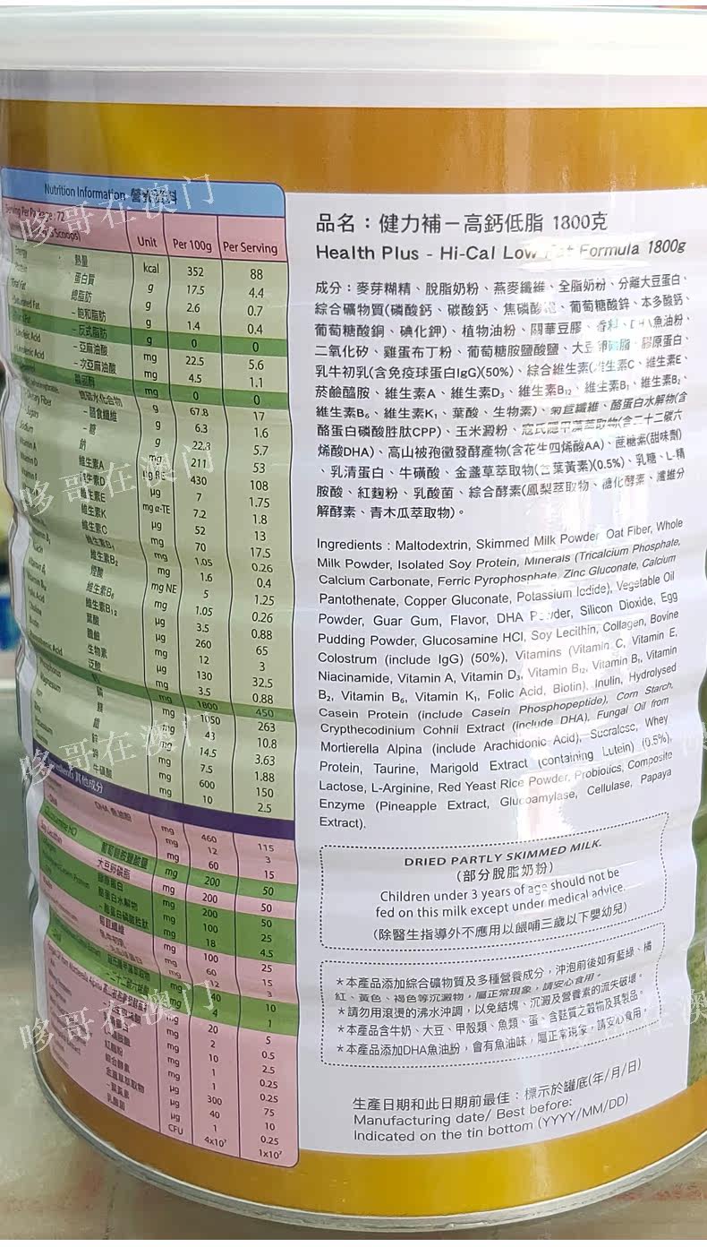 Macau Jianlibu High Calcium Low Fat Gold Upgraded Milk Powder Middle-aged and Elderly HealthPlus