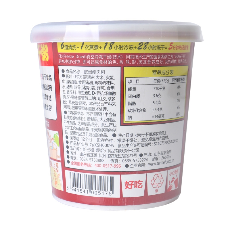 Haifusheng instant porridge preserved egg lean meat porridge instant breakfast porridge breakfast instant porridge freeze-dried porridge brewed nutritious meal replacement