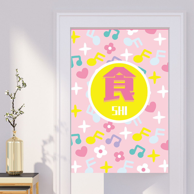 Door Curtain Hand-painted Cartoon Creative Text Buzzword Rabbit Eat No Fat Door Curtain Dessert Pastry Room Door Curtain Hanging Curtain