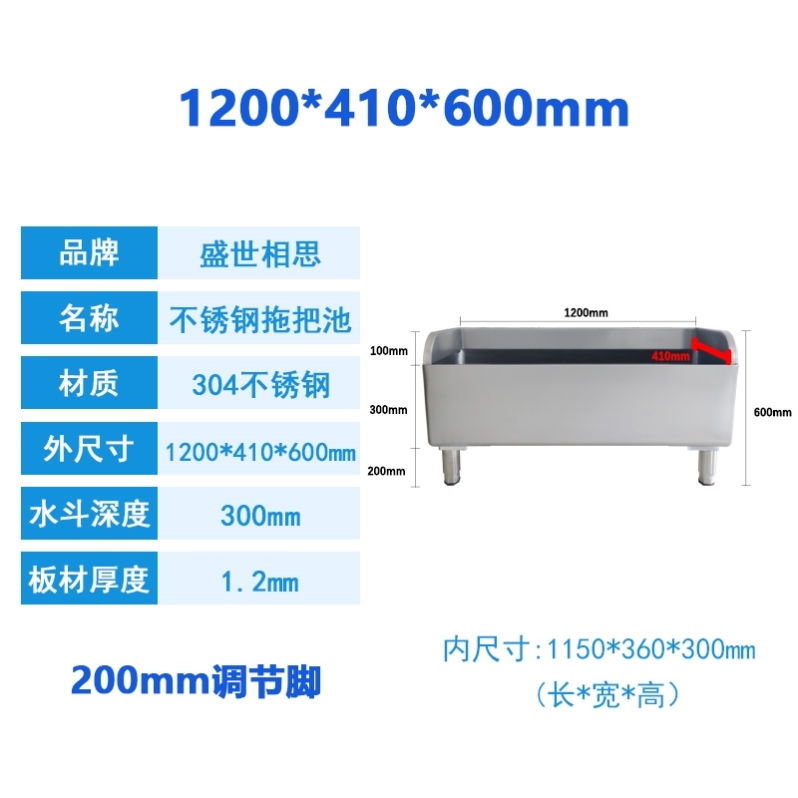 Hospital household mop pool hotel courtyard mop pool long washing pool unit 304 stainless steel mop pool