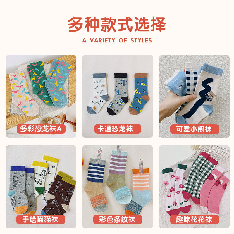 3 Double Costume-Little Bear 3 Double-Hand Painted Cat Socks 3 Double Costume-Cartoon Dinosaur Socks 3 Double Costume-Colorful Striped Socks 3 Double-Colorful Dinosaur Socks A 3 Double Costume-Colorful