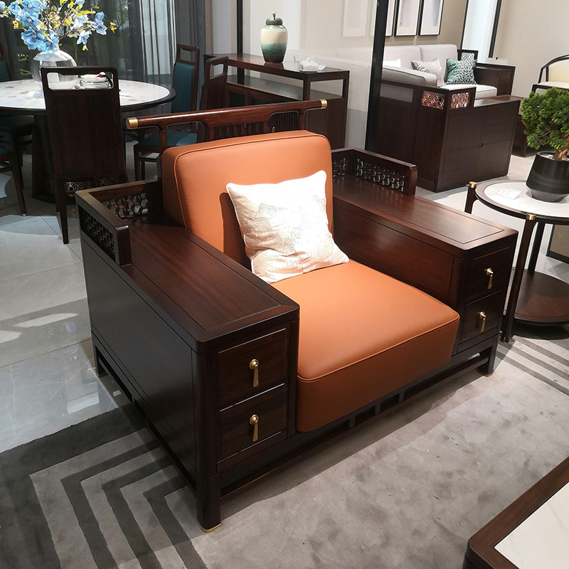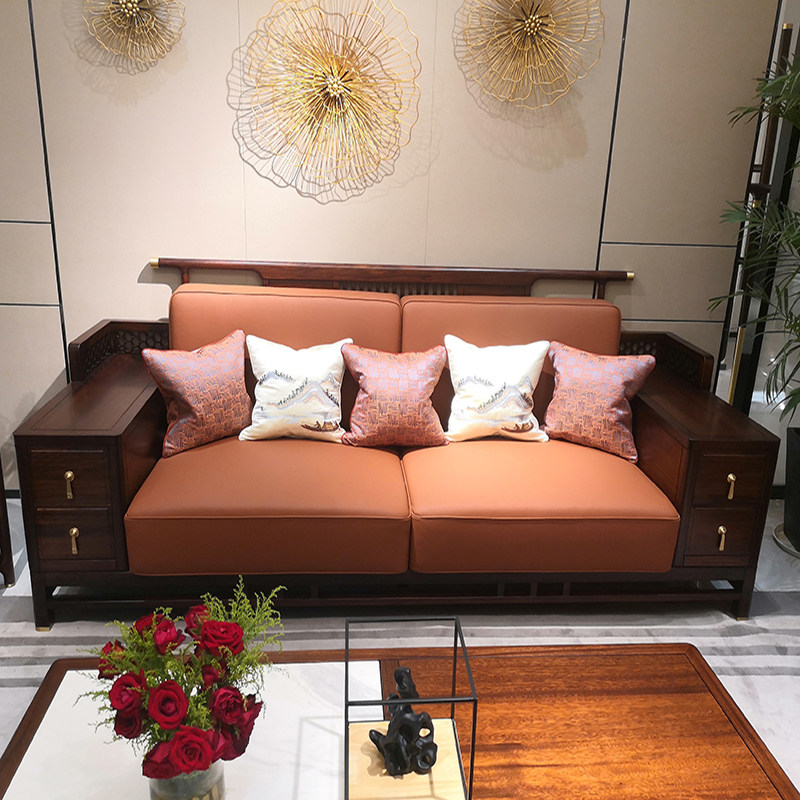 New Chinese style solid wood sofa combination simple modern Zen ebony wood sofa size apartment living room furniture spot