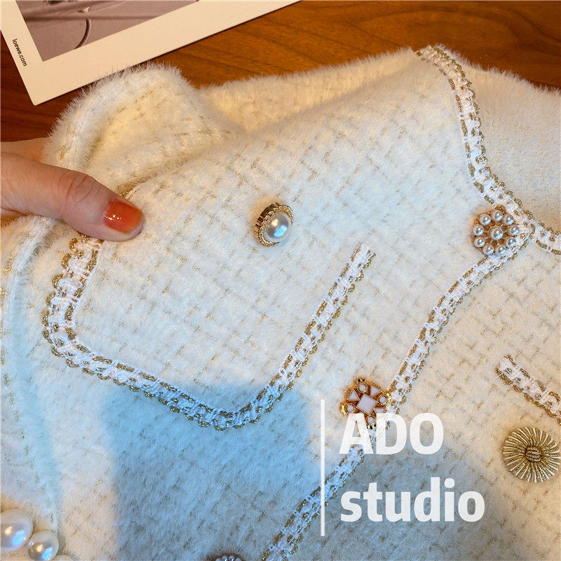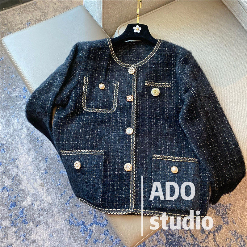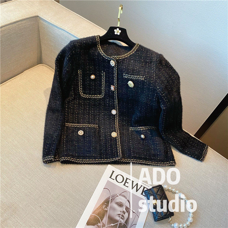 Small Fragrant Wind Knit Cardiovert Jacket Woman 2022 Spring Short Thin Ocean Pie Round Collar Sweater Single Row Buttoned Long Sleeve Blouse
