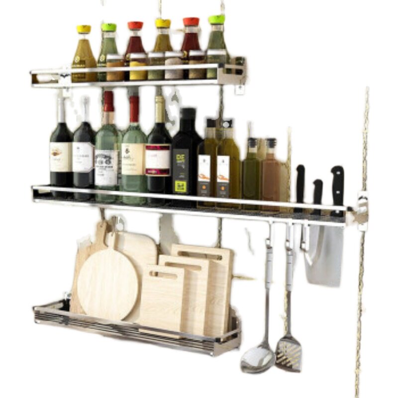 304 stainless steel kitchen shelf wall-mounted wall-free punch-free seasoning storage shelf CS6008