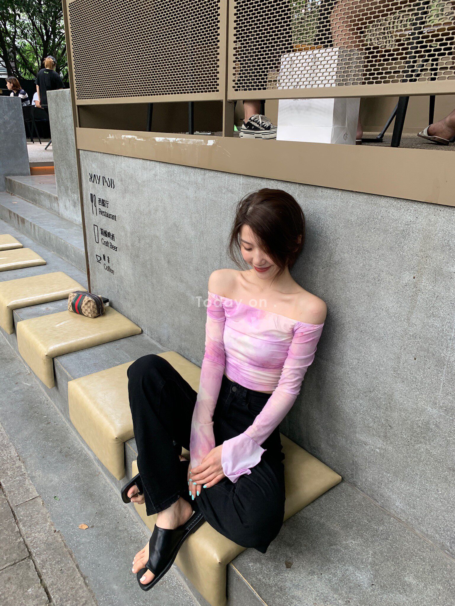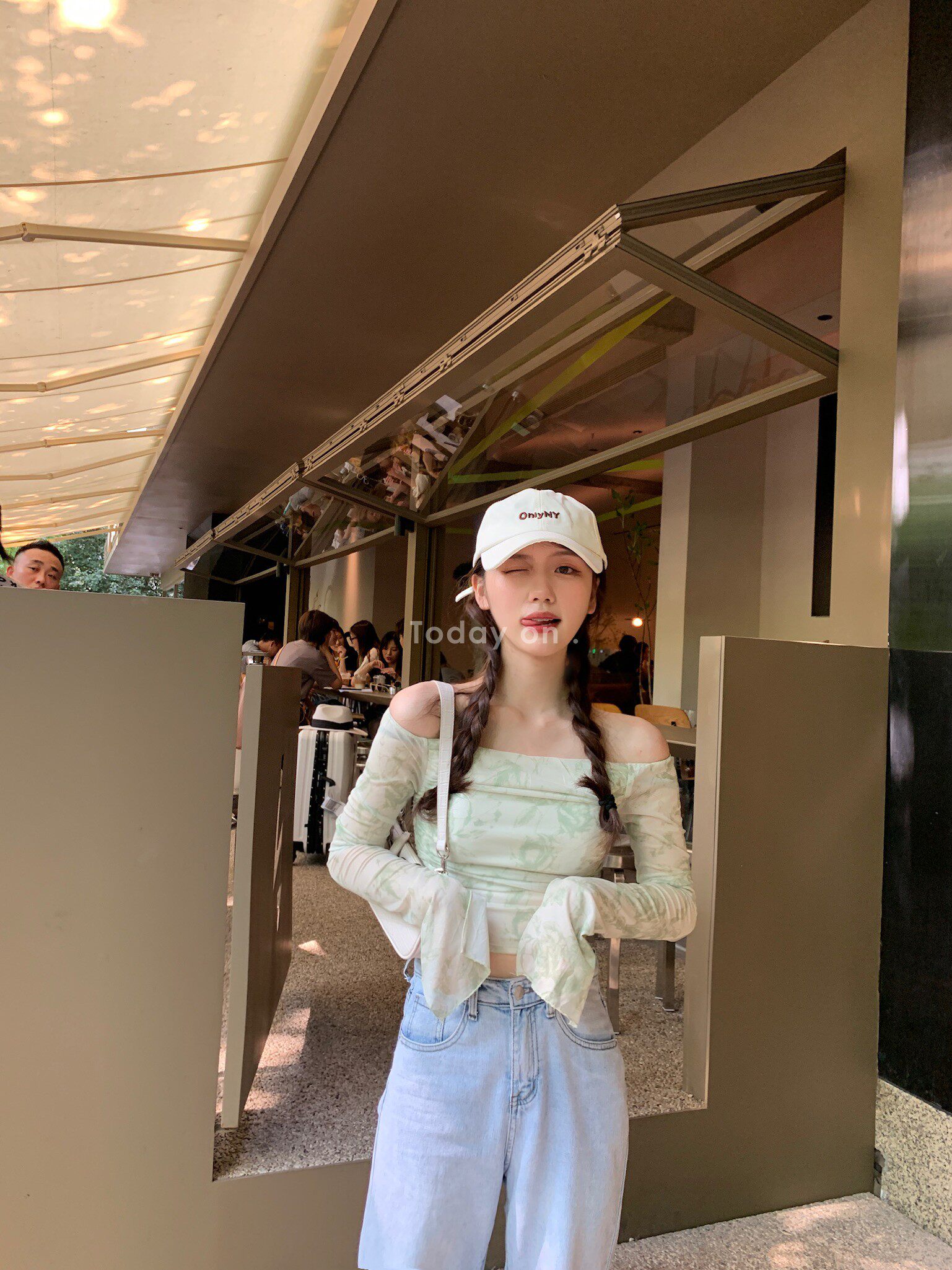 Summer Clearance No Returns] Gentle wind double-layer mesh one-shoulder pleated ruffled tie-dye long sleeves are thin and short