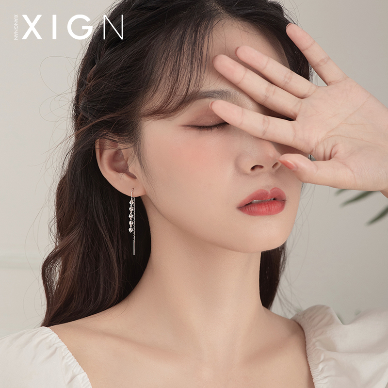 XIGN leaf ear necklace pure silver sensual long version eardrop woman 2022 new wave ear-pin summer earrings earrings 2021