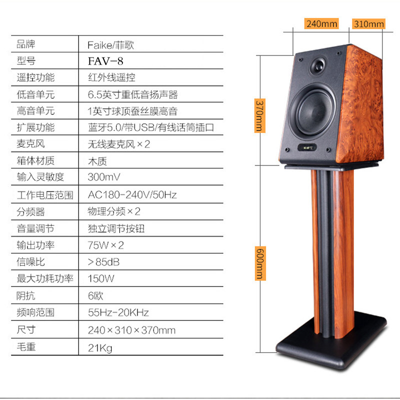 Danish Feige hifi-level bookshelf speaker home fiber-optic coaxial living room TV K song audio bass active