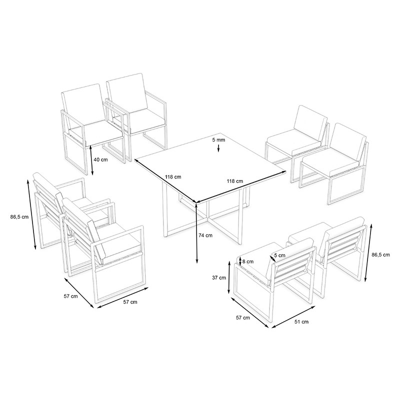 One table and four chairs (all aluminum paint) upgrade the backrest one table and eight chairs (all aluminum paint) upgrade the backrest