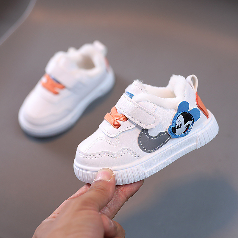 Baby shoes soft-soled sneakers 1-2 years old girls' skate shoes boys baby toddler shoes autumn and winter plus velvet cotton shoes