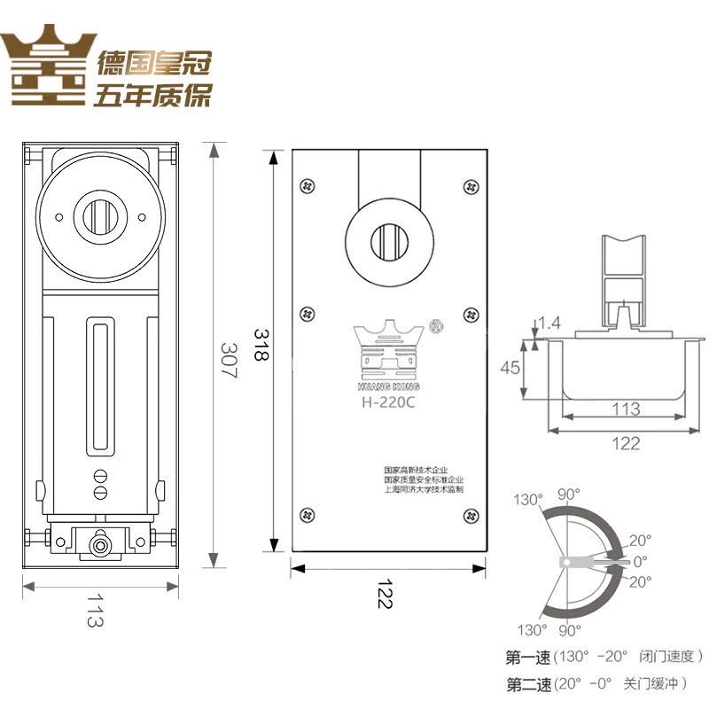 German crown floor spring G-322 universal glass door wooden door positioning non-positioning ground Huang 170 kg load-bearing