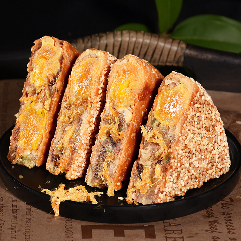 Wheat flour, pork belly fat, candied dates, peanuts, sesame seeds, longan, winter melon strips, red and green melons, white sugar, maltose, edible vegetable oil, etc.