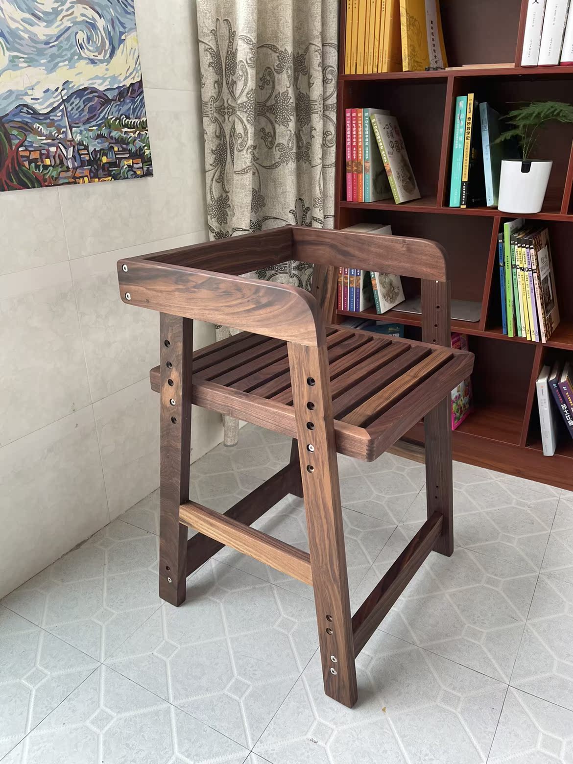 Black Walnuts Solid Wood Children Study Chair Student Backrest Office Chair Home liftable Adjustable Corrective Sitting Chair
