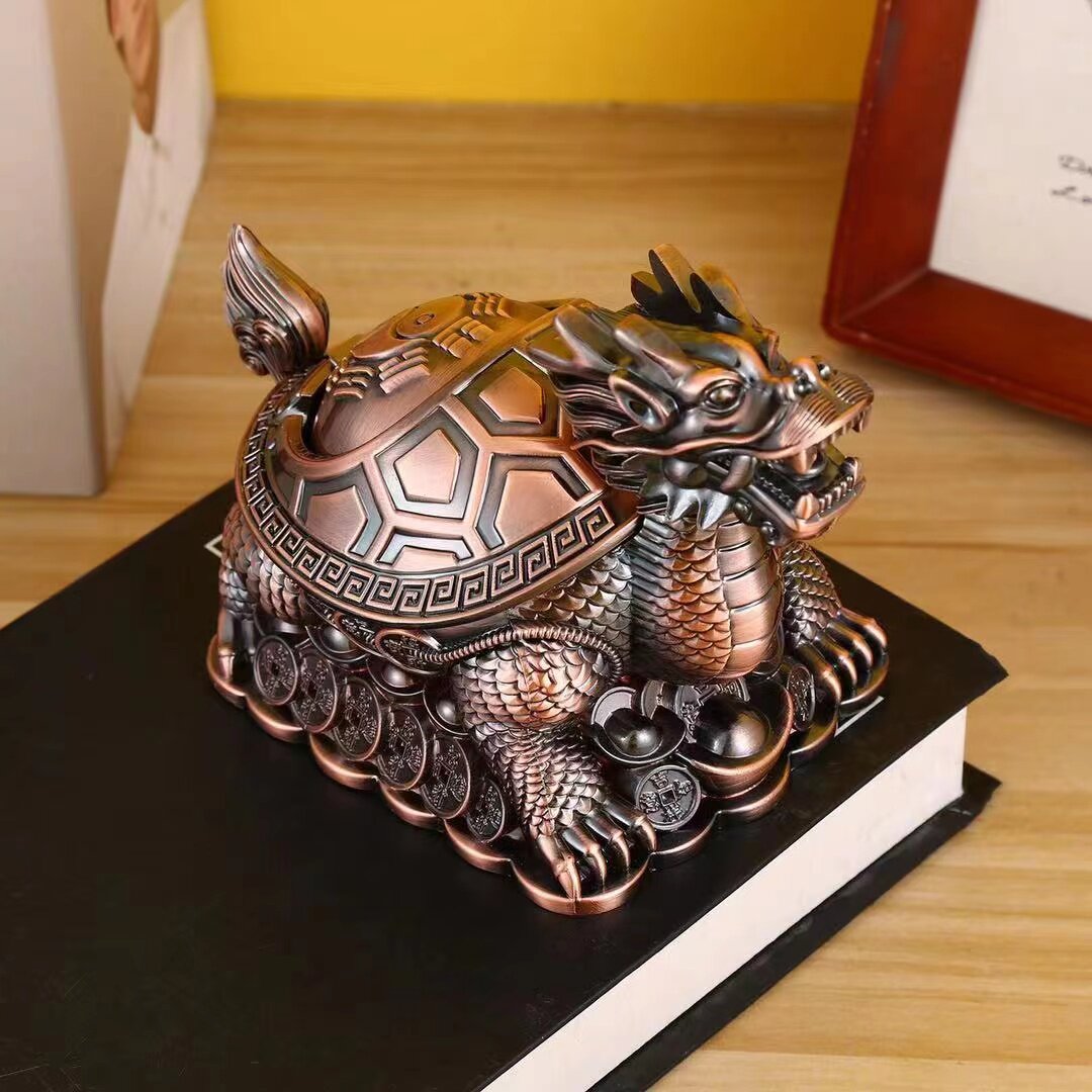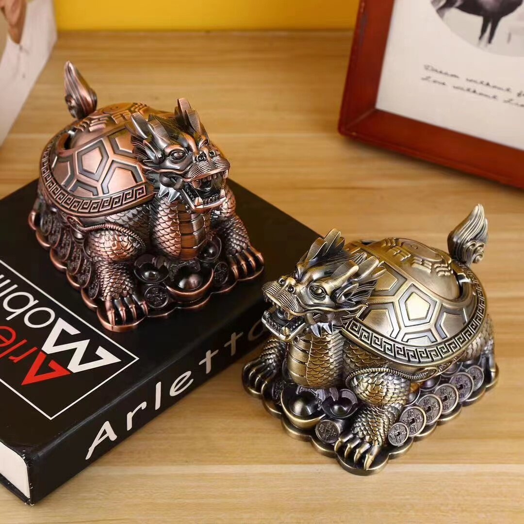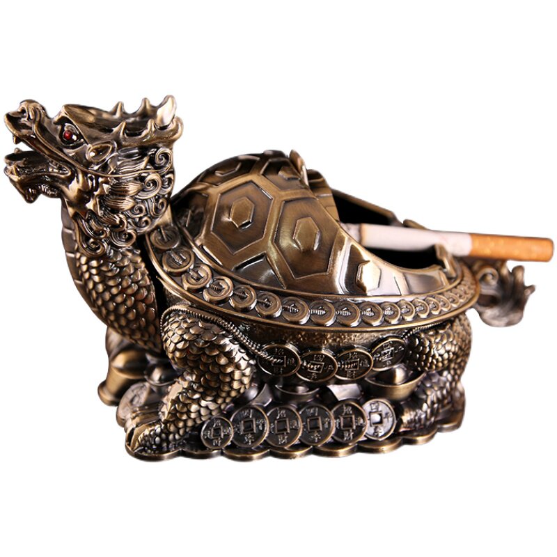 Home Retro Cigarette Ashtray Fashion Swing Set With Lid Creative Ornament Living-room Tea Table Big Dragon Tortoise's Cigarette Cylinders