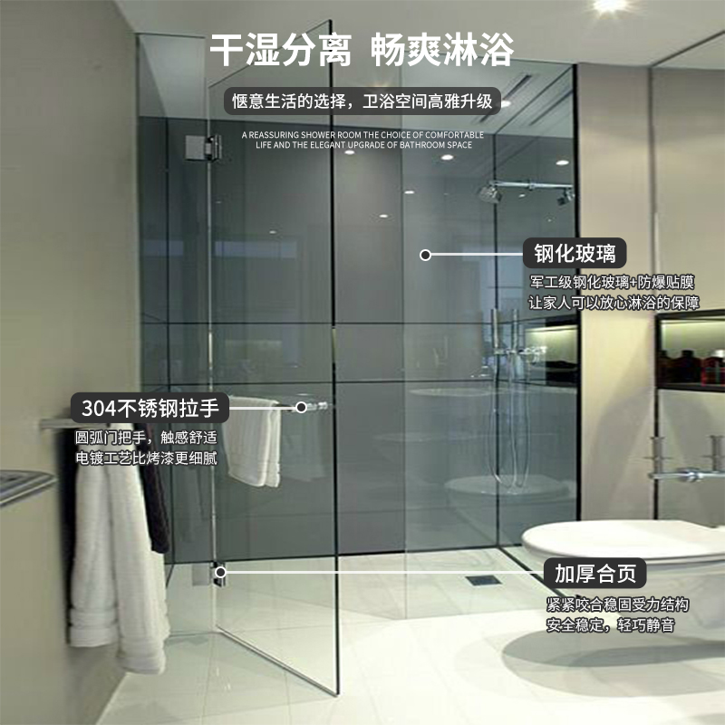 One-type flat door open door shower room tempered glass partition Makeup Room Dry Wet separation No rims Bathroom Shower room