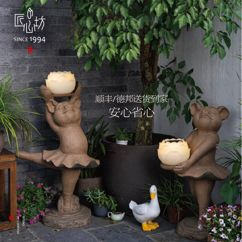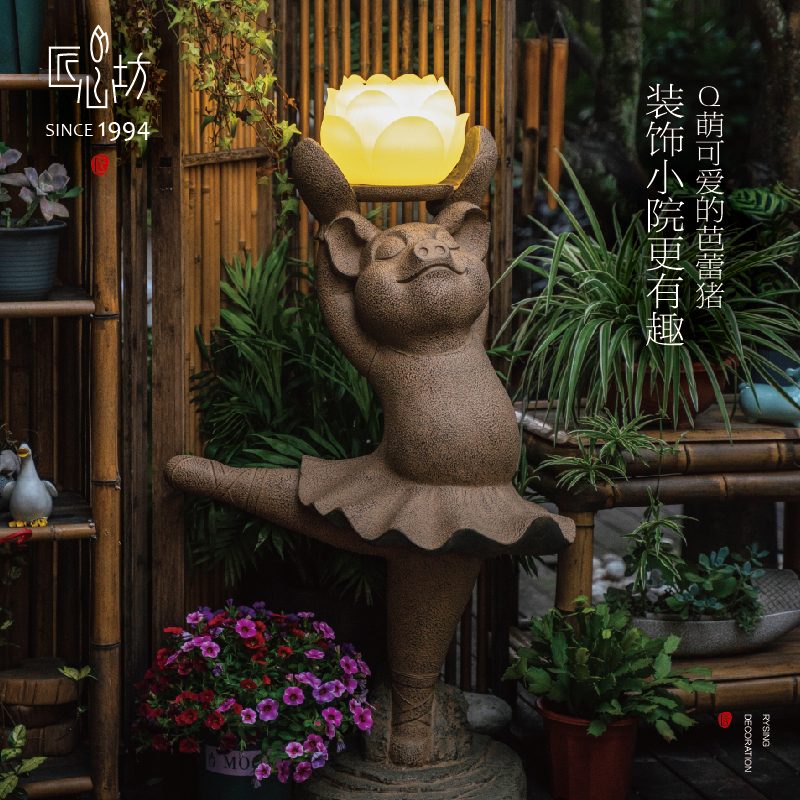 The Artisan's Workshop New Chinese Solar Outdoor Yard lamp ballet Pig Courtyard Garden Landscaping Terrace Decoration
