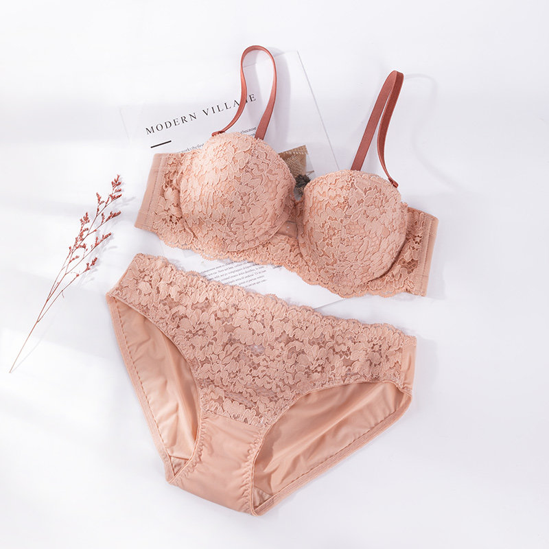 Song Liano Lingerie Women's Summer Sexy Pure Desire Lace Thin soft steel ring small breasts to woo half a cup of a bra suit