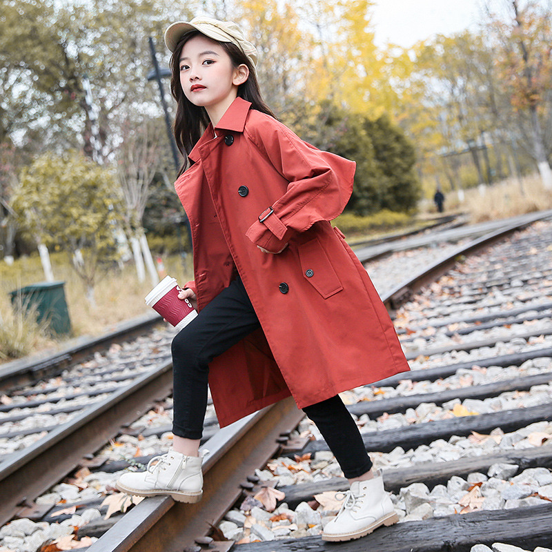 Girls' windbreaker 2021 autumn new fashion Korean version of the Western style autumn children's clothing mid-length version of the little girl trend coat