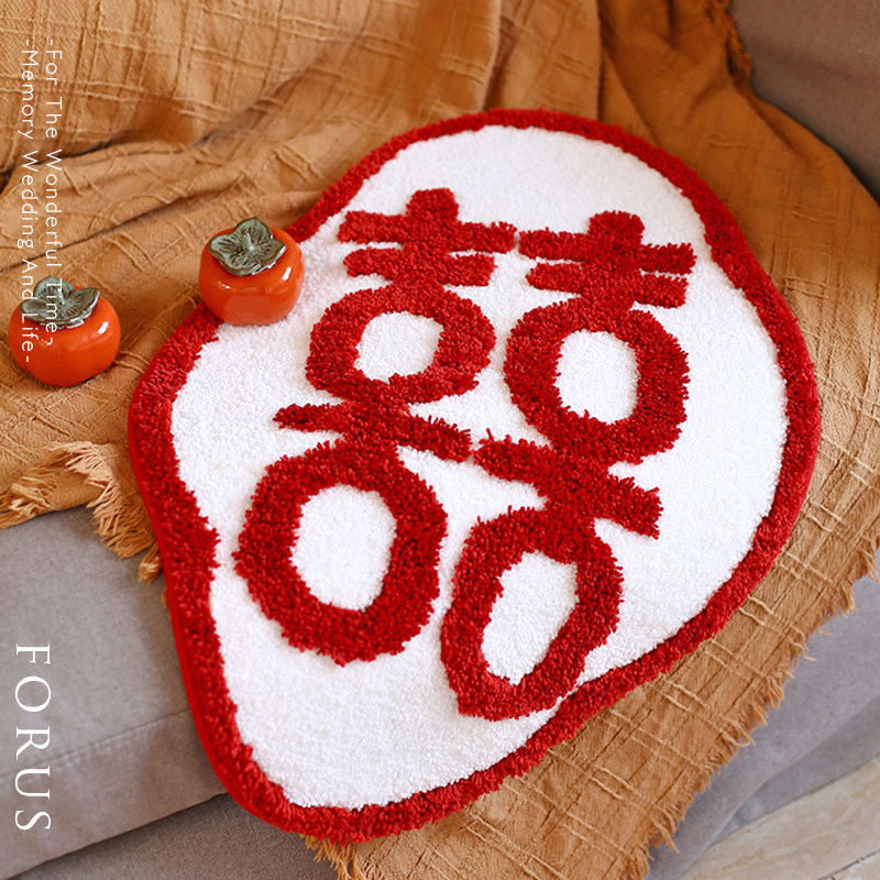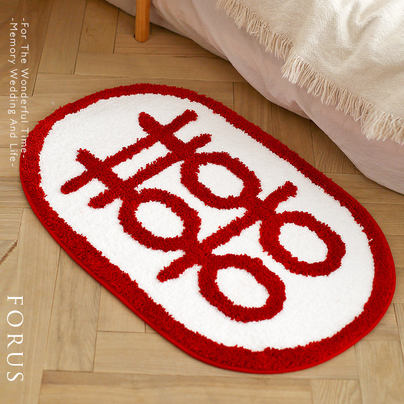 Wedding entry floor mat bedroom bedside red carpet hi word lace carpet foot pad festive Chinese wedding room layout