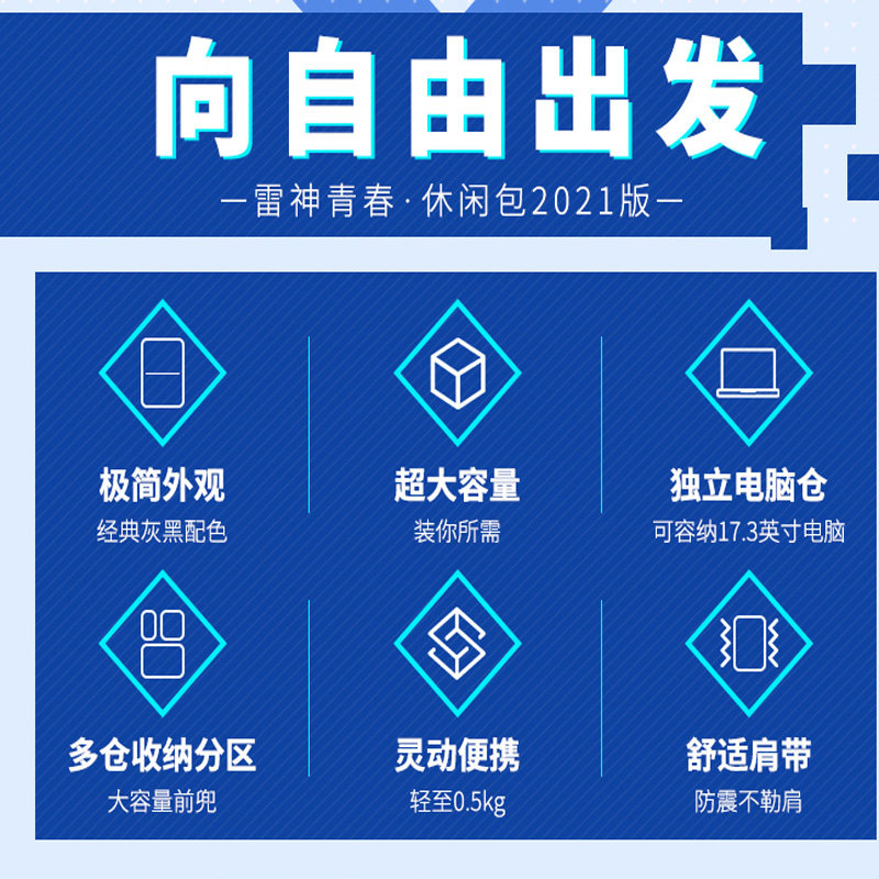 Thunder God Four Generations Casual Shoulder Bag Double Shoulder Pen Electric Bag Men's Large Capacity College Student Female High School Leisure Bag