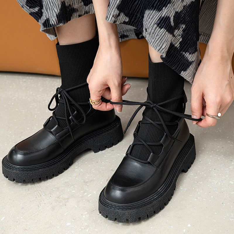 (Clearance)Martin Boots Women's 2021 New Boots Thick Sole Women's Boots Winter Single Boots Black Short Boots Elastic Boots