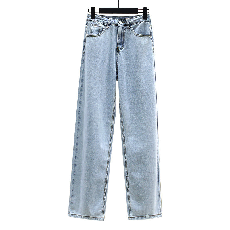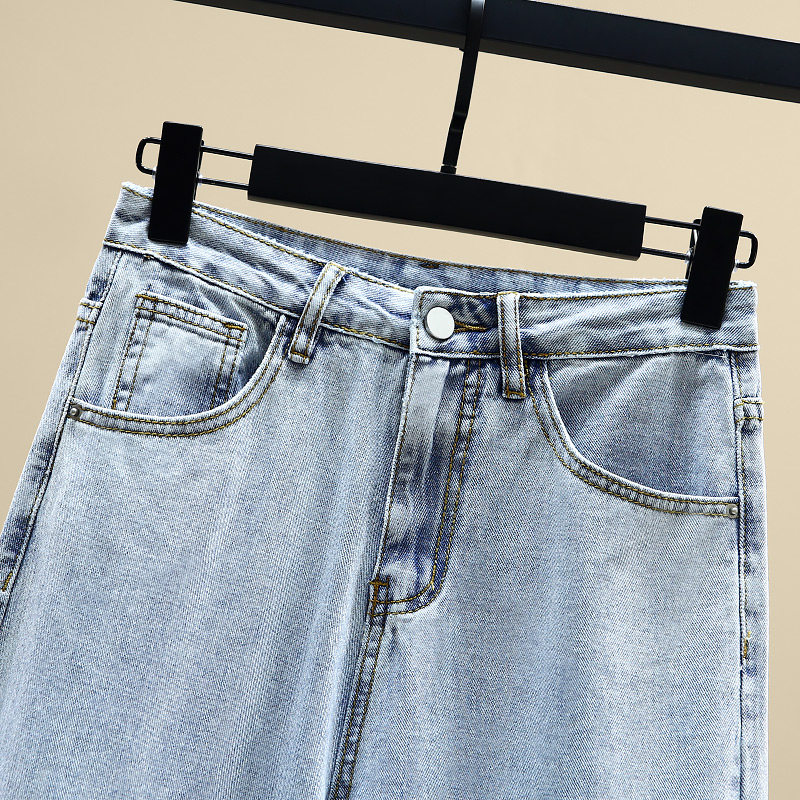 La Chapelle denim wide-leg pants women look thin and tall nine points high waist small loose spring and autumn lengthened straight pants