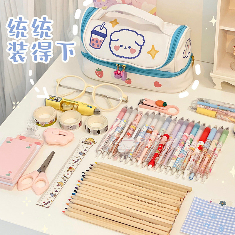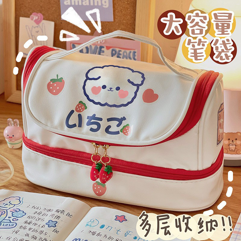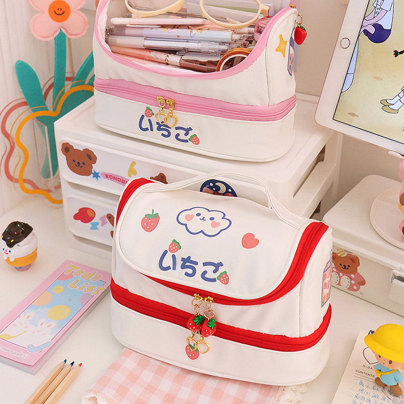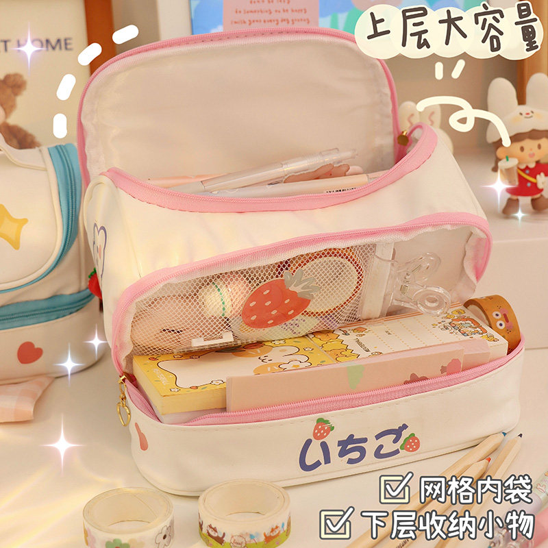 ins net red female pen bag large capacity student junior high school stationery bag lead pencil case multilayer creative cute containing bag