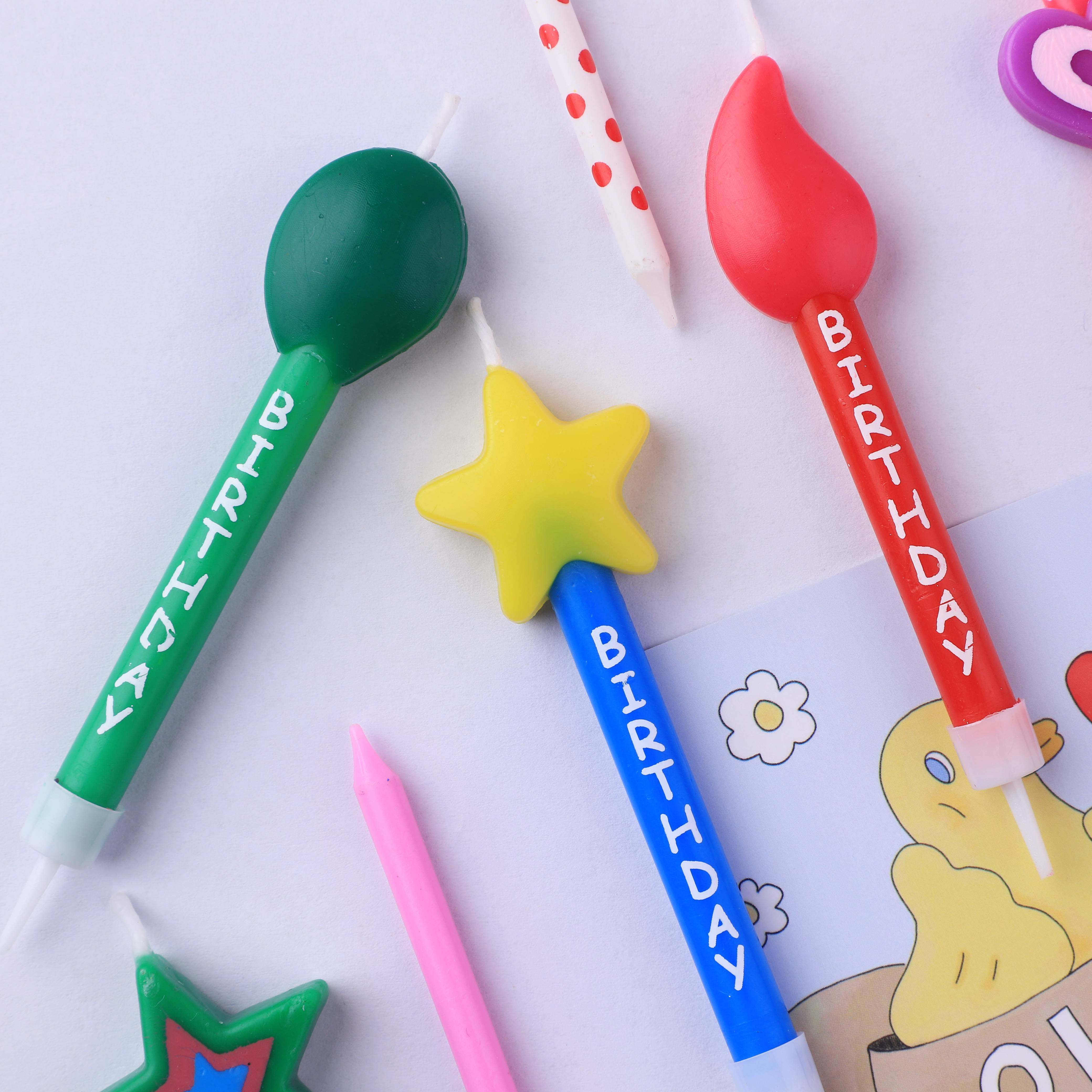 Korea INS Stars Balloon Flame Colorful Birthday Cake Candle Baking Party Decorated Candle Plugin-Taobao