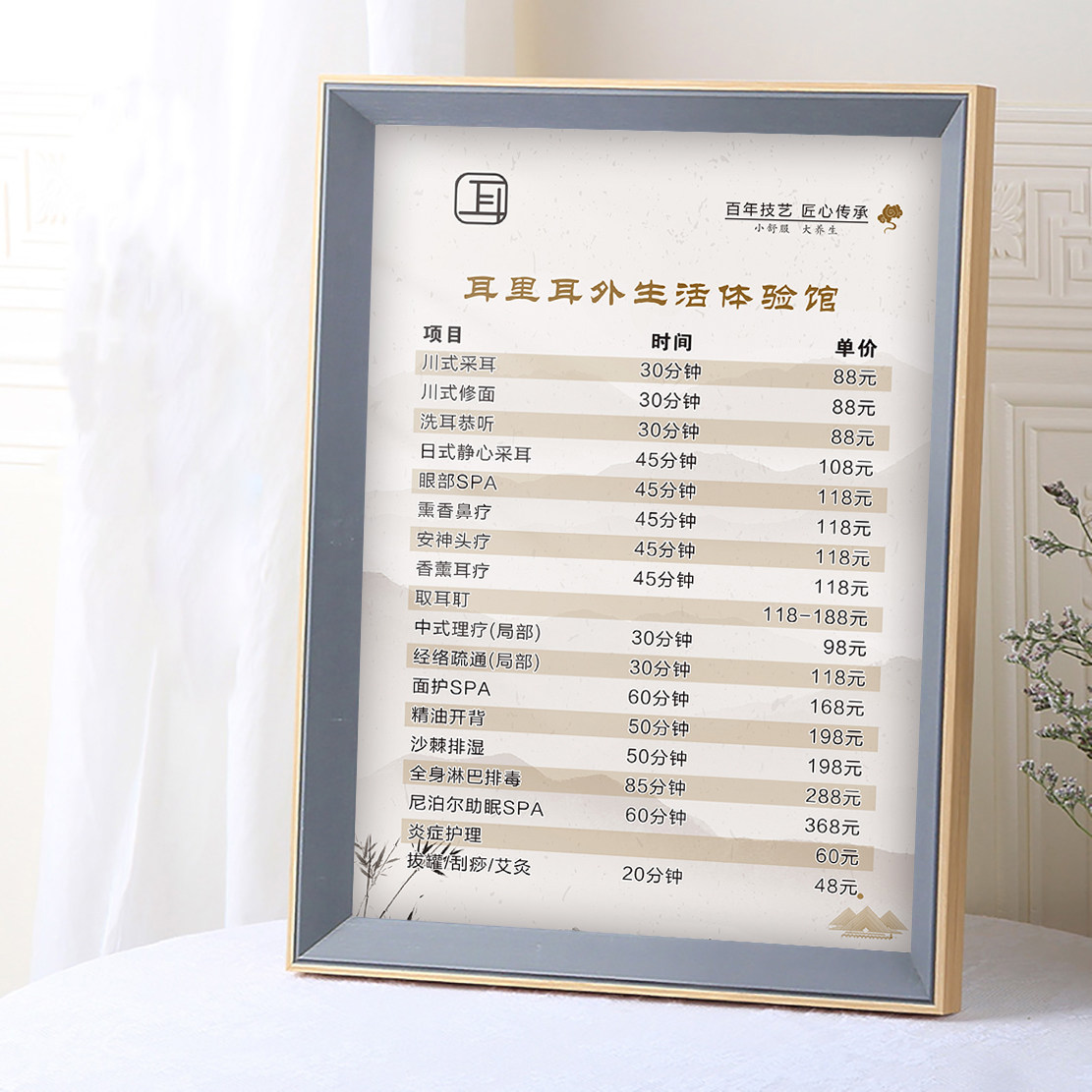 TCM Health Preservation Hall Physiotherapy Ad Hoc Price List Pli Price List Wooden Hanging Wall Sticker Posters Custom Design Making