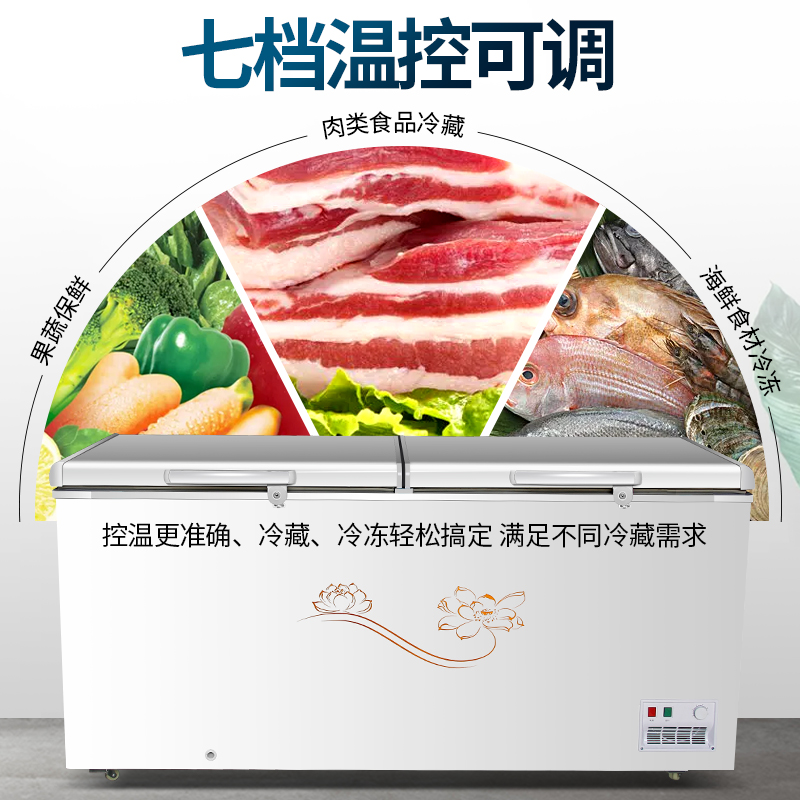 Horizontal freezer commercial large-capacity freezer single-temperature dual-temperature refrigerator freezer freezer fresh-keeping cabinet energy-saving refrigerator