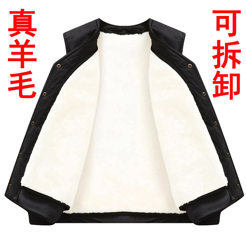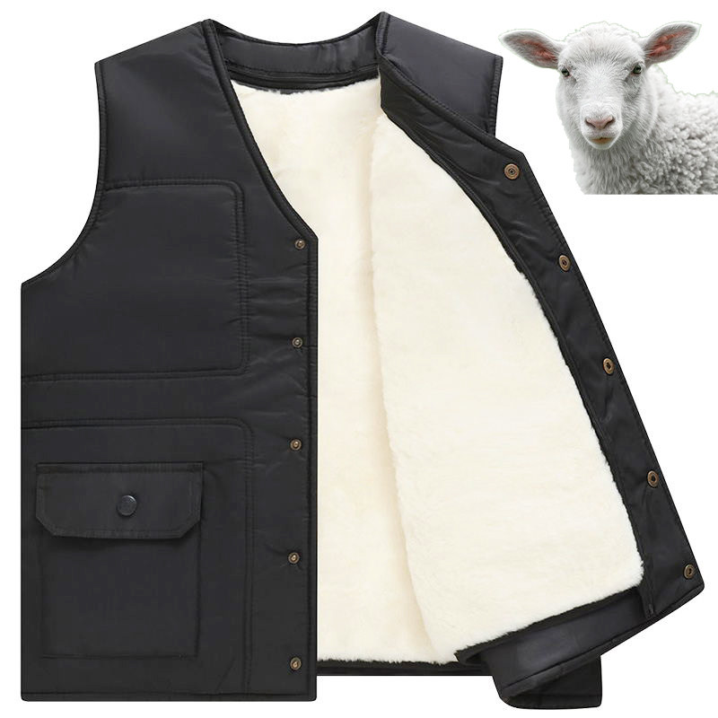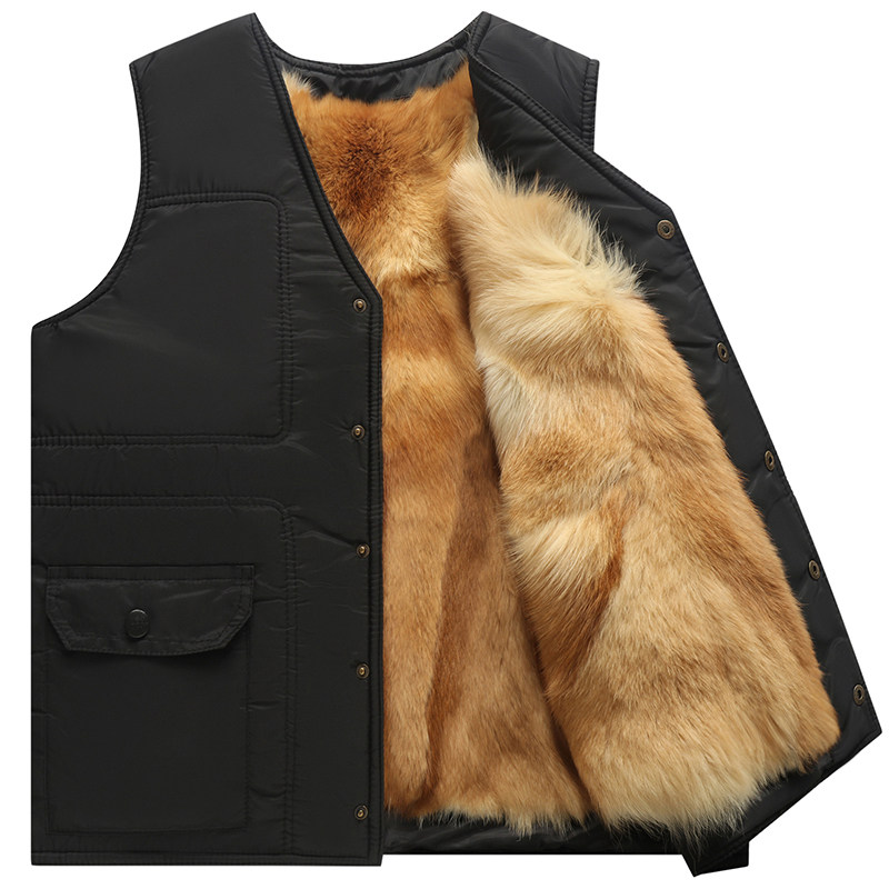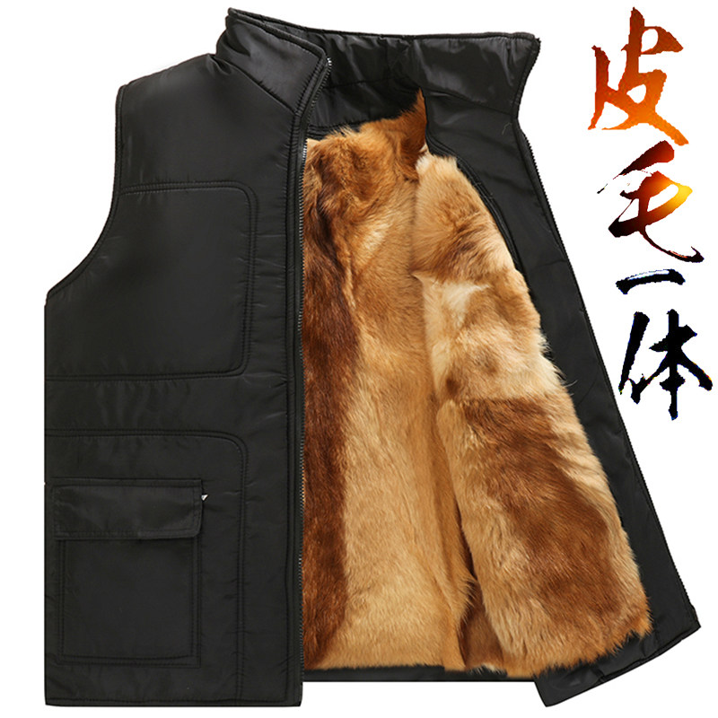 Wool waistcoat Male fur integrated Kanshoulder autumn Winter in elderly Thickened Cotton Warm Leather Vest Dad Dress-Taobao