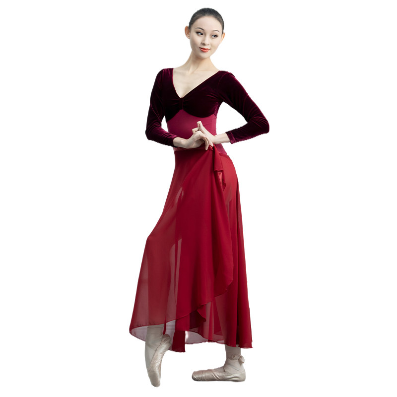 Cloud comfort ballet dresses female adult snowspun one-piece lace half-body long dress irregular skirt hem dance half-body dress
