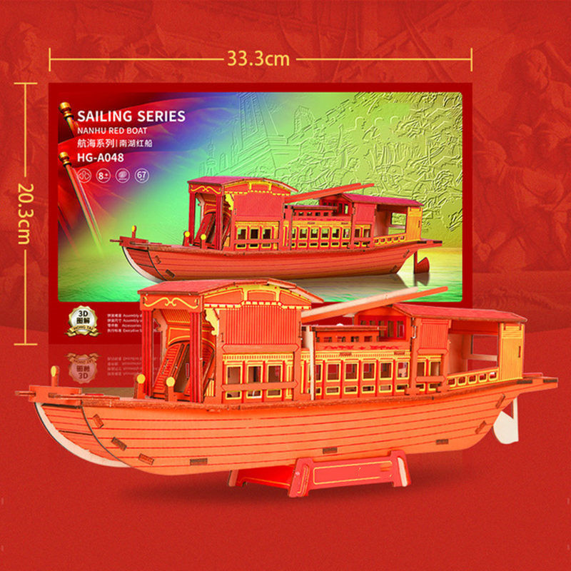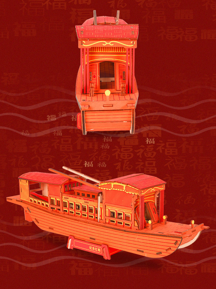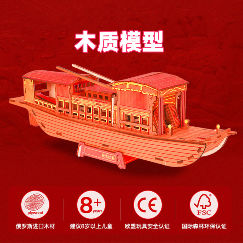 Jiaxing Nanhu red boat model handmade diy assembly Craft boat ornaments creative gifts children adult puzzle 3