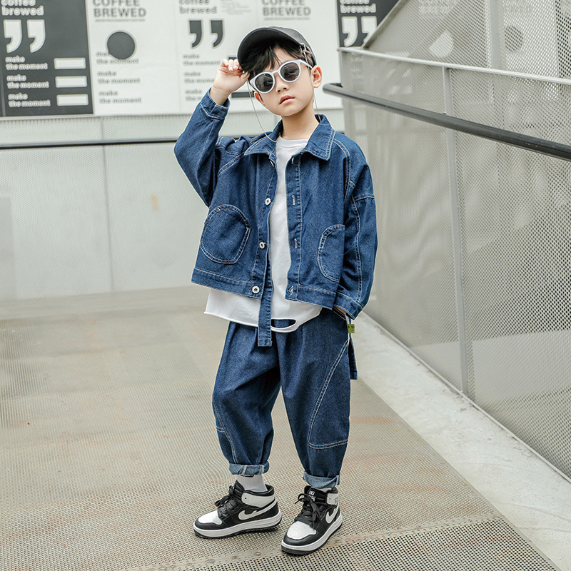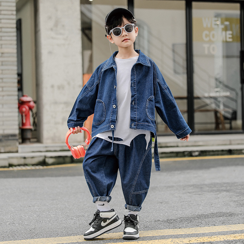 2021 autumn new denim suit thin Korean version loose casual fashion boy lapel fashion trend three-piece suit