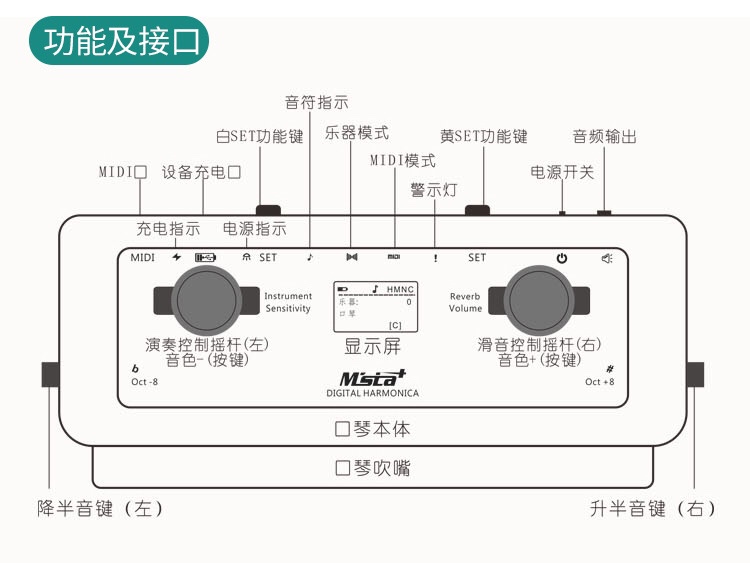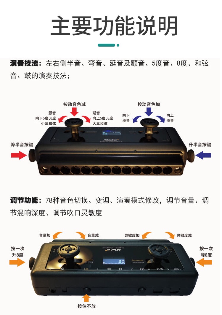 Mezca HM12 digital electronic chromatic scale MIDI harmonica 78 kinds of timbre change pitch change pitch bend C6 tuning