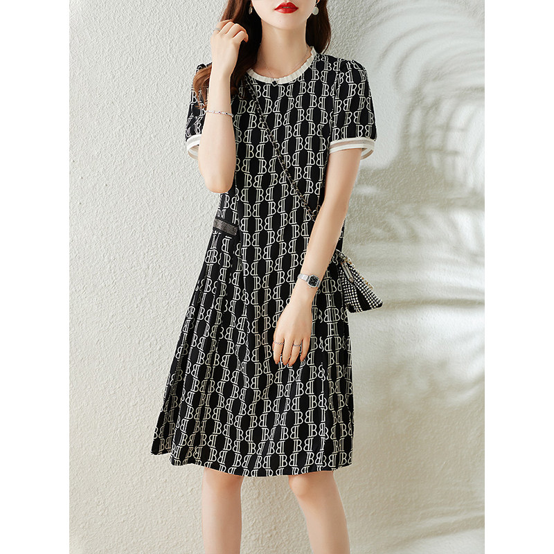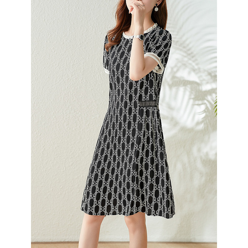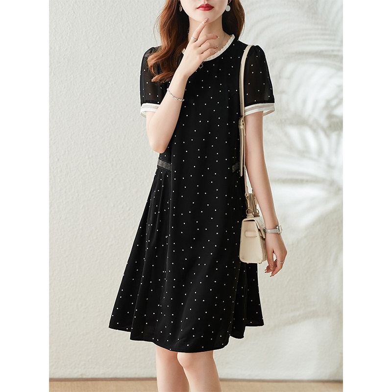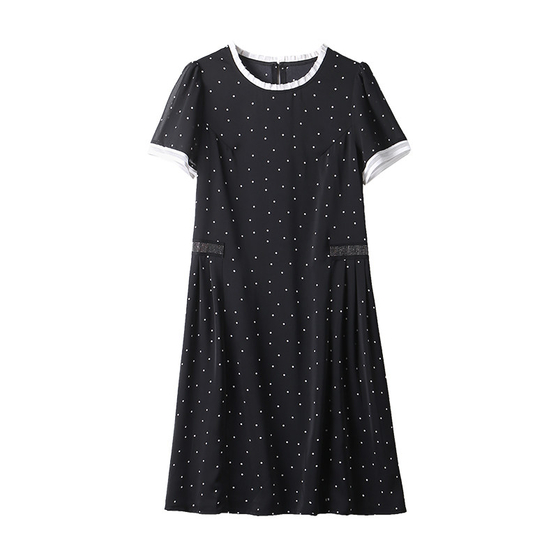 Fataway retro small polo dot Ocean dress female summer temperament loose display slim fit straight cylinder large size women's dress Herbenwind small black dress