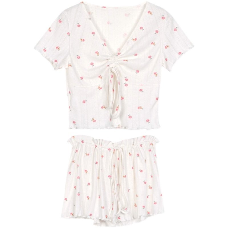 SADO YINER cotton pajamas women's summer thin French floral ins wind short-sleeved shorts homewear suit