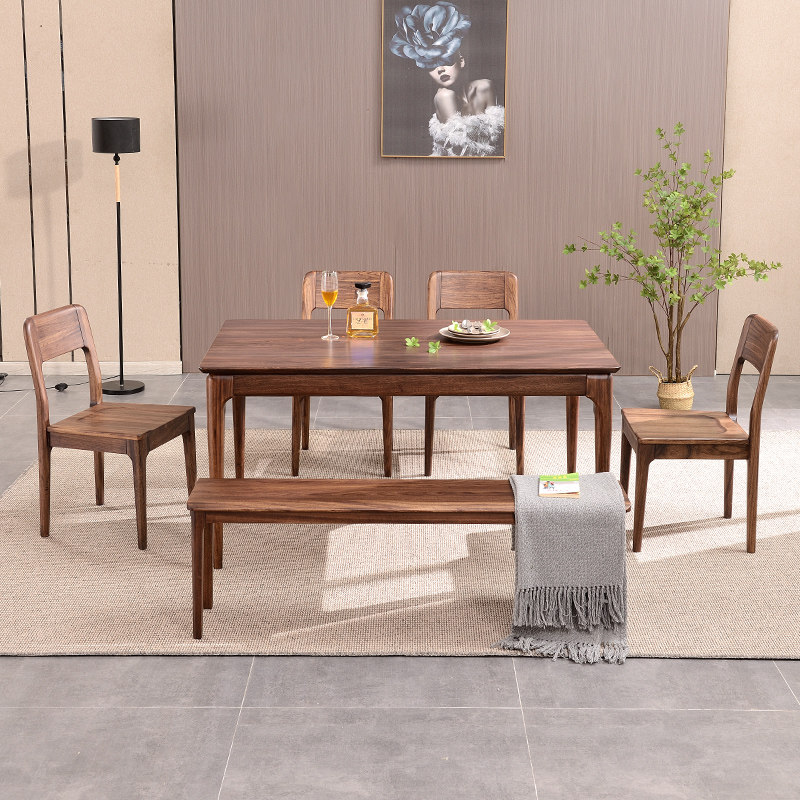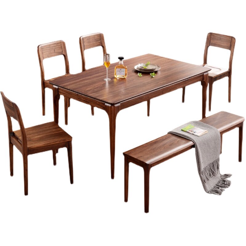 Nordic ebony wood dining table and chairs all solid wood rectangular one table four six chairs combination simple household small-sized dining table
