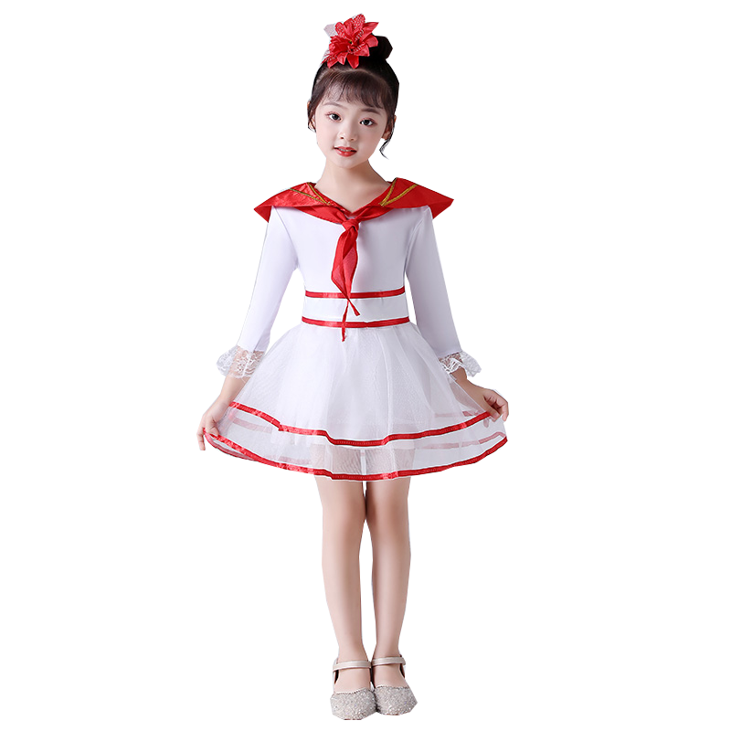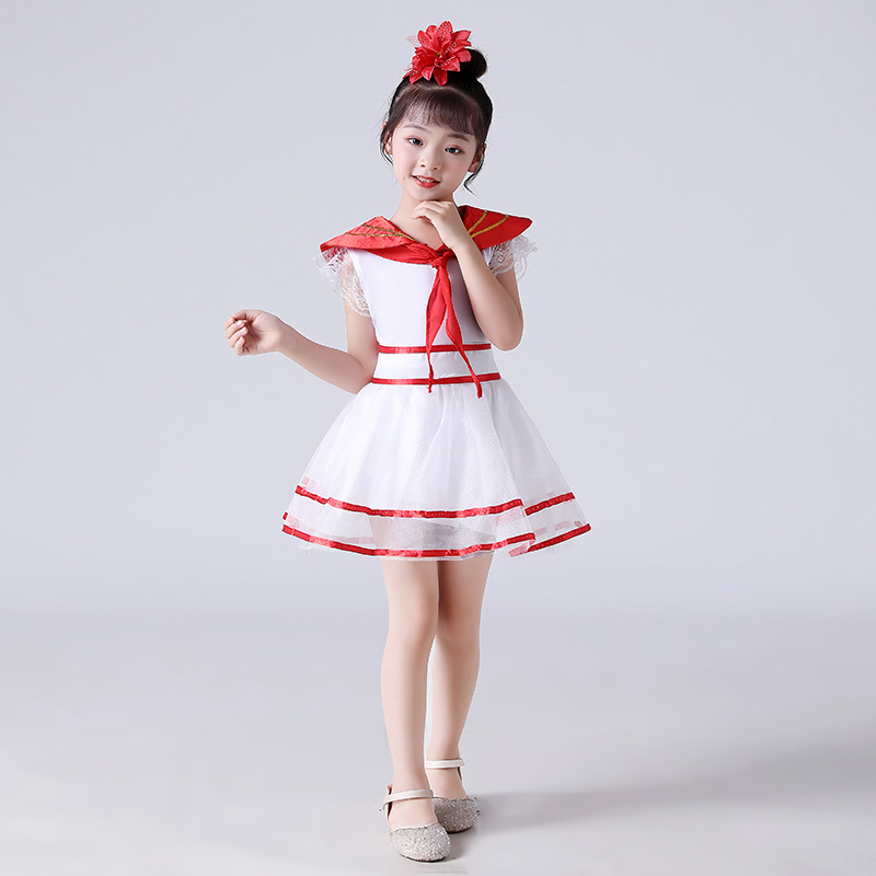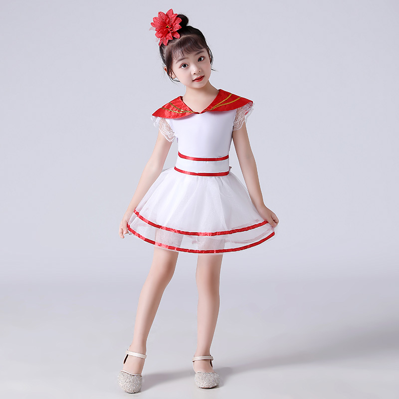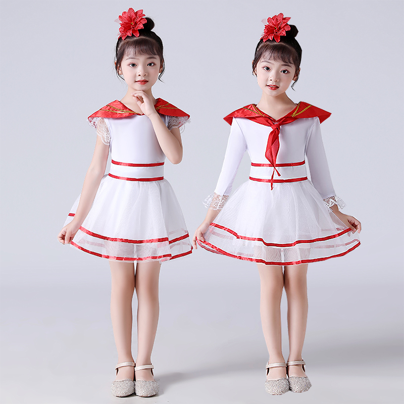 61 children's performance costumes I'm a red scarf performance dance dress Dress Fluffy Skirt primary and middle school choral suit