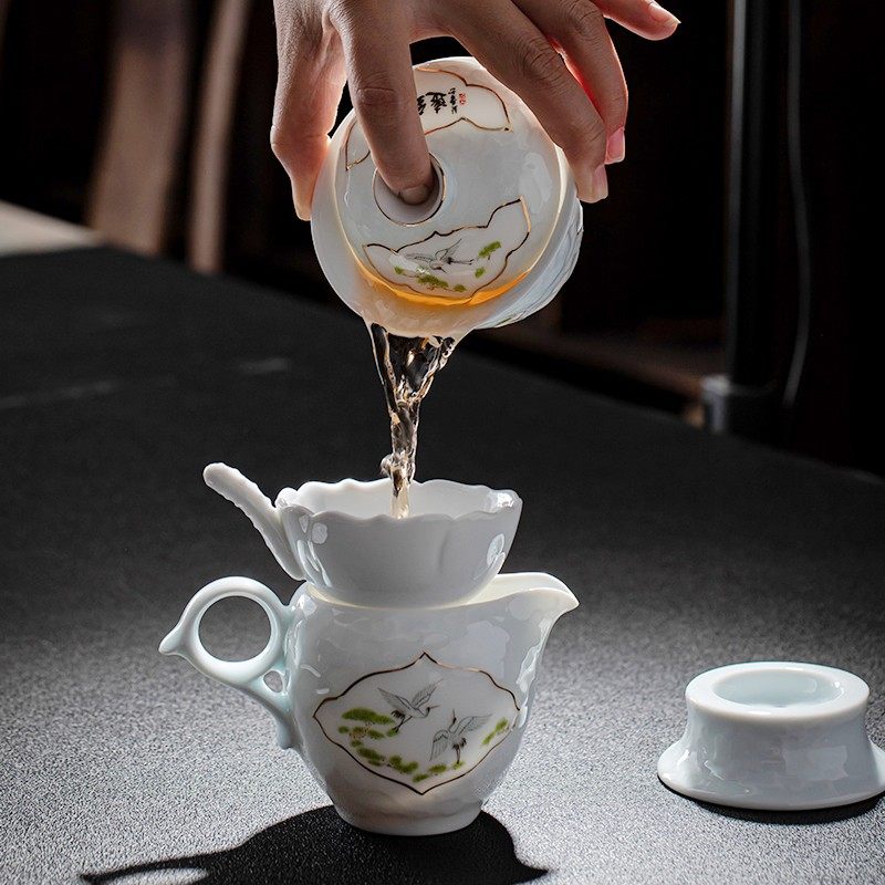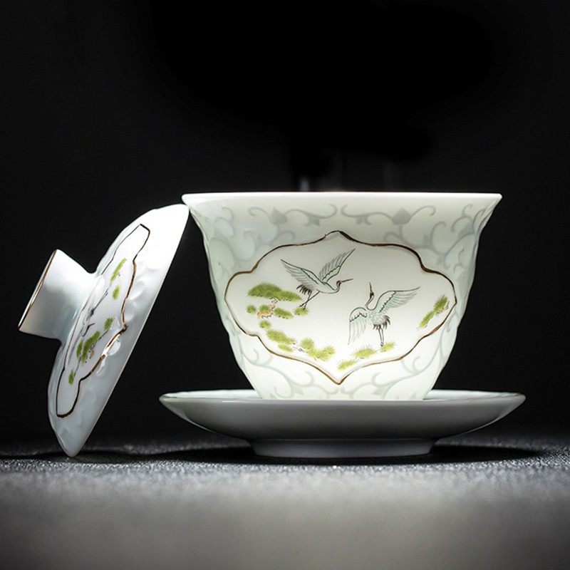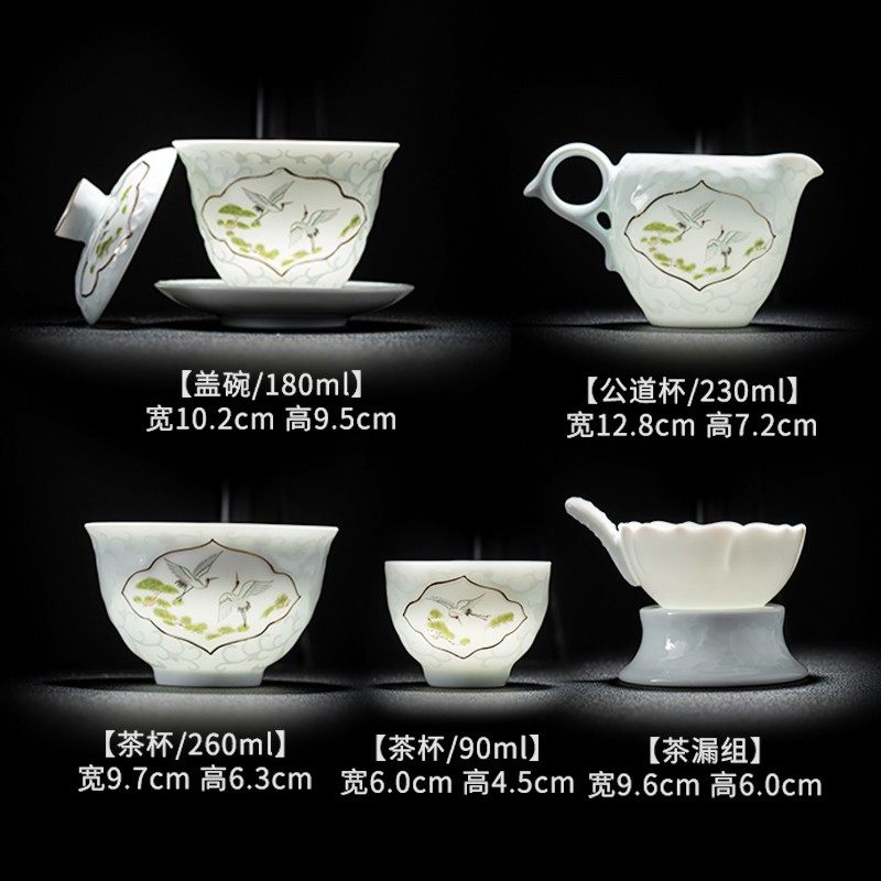 Yu Tea Set Household Green Ceramic Emerald Jade Cover Bowl Group Tea Cup High-end Gift Office Members