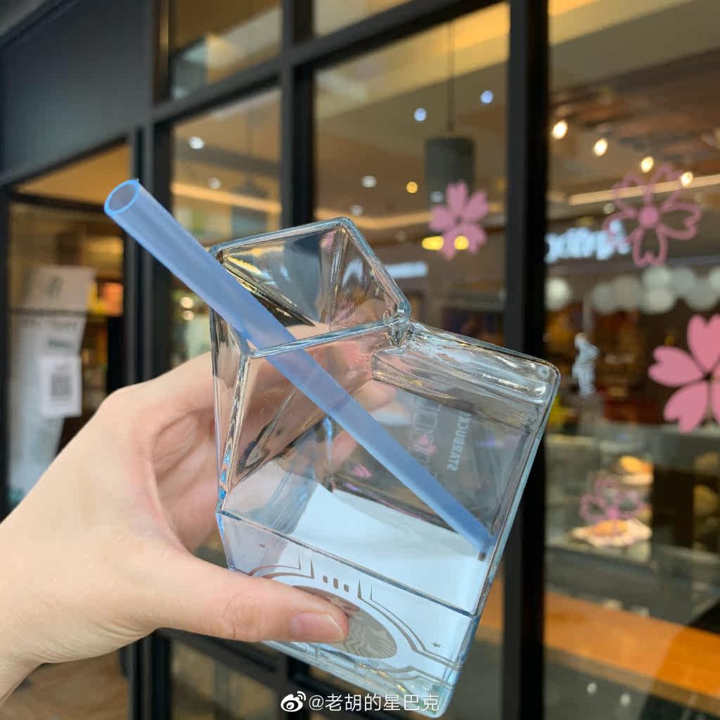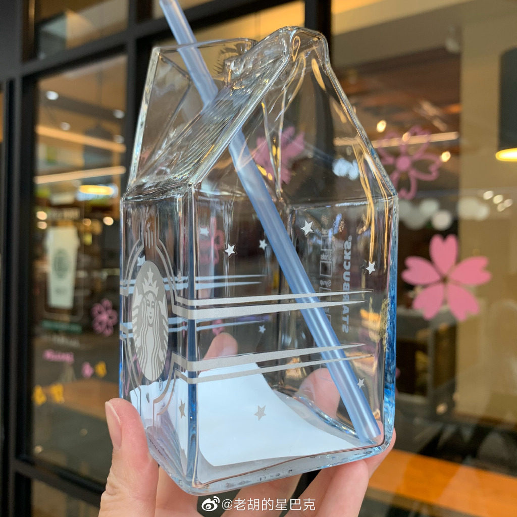 618 Clear Cabin Starbucks Milk Box Glass Cups Straw Cute Fun Cold-Future Astronaut Creative Water Glass