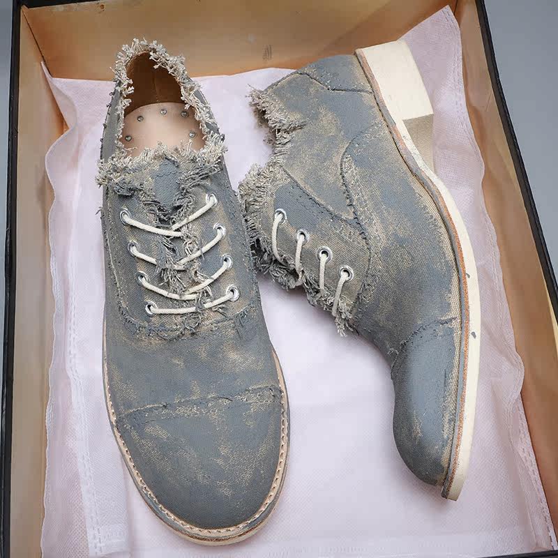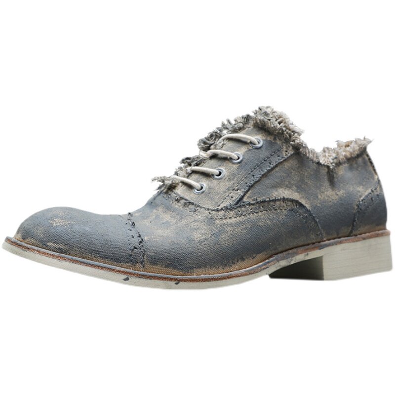 Original handmade leather men's round head business personality retro old-fashioned hair stylist casual big scalp shoes trend - Taobao